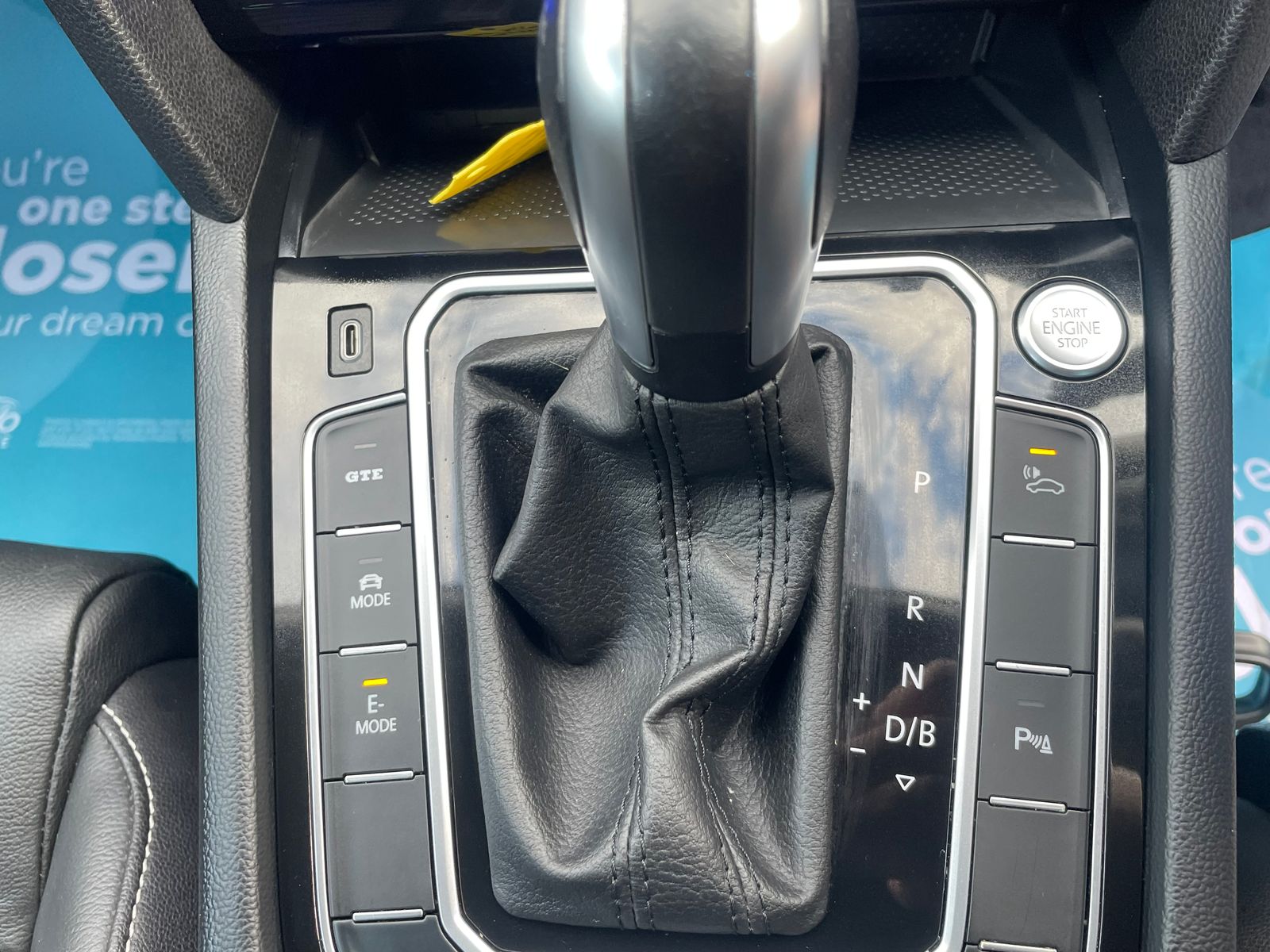 - Leather Trimmed Gear Knob Gaiter with Blue Contrast Stitching